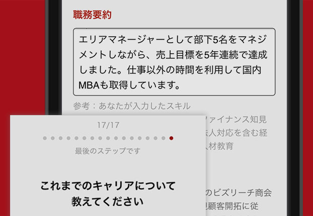 経歴を詳細に登録するとマッチング精度が向上